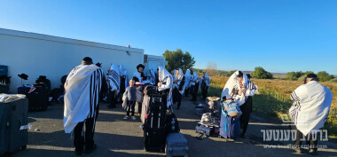 אנשי שלומינו אין ארץ ישראל ביים דאווענען מעריב אינעם עירפארט אויפן ווןעג קיין אומאן - ד' נצבים תשפ"ה