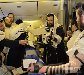 דער ראש ישיבה שליט"א דאווענט שחרית און קריאת התורה אויפן פליגער קיין אומאן - ה' נצבים תשפ"ה