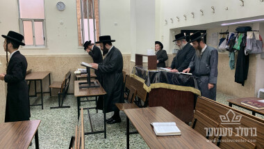 דער ראש ישיבה שליט"א דאווענט שחרית מיט די בחורים אין מירון - ד' אמור תשפ"ה