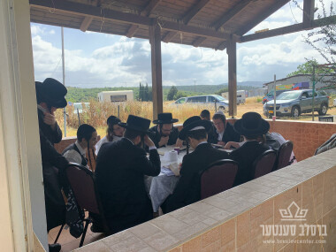 דער ראש ישיבה שליט"א מיט אנשי שלומינו ביים ביה"ח אין קרית יואל - ה' תרומה תשפ"ה