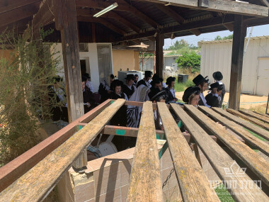 דער ראש ישיבה שליט"א לערנט מיט די בחורים פון די ירושלים'ע ישיבה פאר שחרית אין מירון - ד' אמור תשפ"ה
