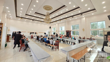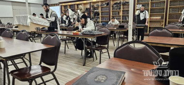 די גרעסערע קינדער פון תלמוד תורה אין שטעטל ביים לערנען אין היכל ראזענבערג אין שטעטל - ב' האזינו תשפ"ו