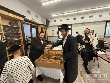 דער שמש מו"ה ישראל פוקס הי"ו ביים פארטיילן קעיק נאך שחרית - ערב יום הקדוש תשפ"ו