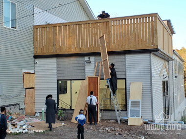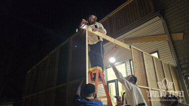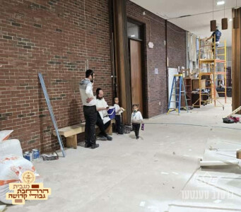 דער בוי מייסטער מו"ה שבתי מזרחי הי"ו מיט מו"ה אייזיק ראטה הי"ו לייגן אריין איבערמידליכע כוחות די נייע שטאק זאל זיין גרייט אויף אסרו חג - ערב סוכות תשפ"ו