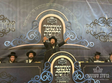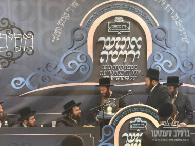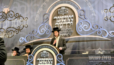 מו"ה מרדכי לייב טירנויער הי"ו ביים אויפטרעטן מיט שיינע גראמען לכבוד דעם גרויסן טאג ביים יארצייט פון מוהרא"ש זי"ע אין מאנסי - ג' יתרו תשפ"ו