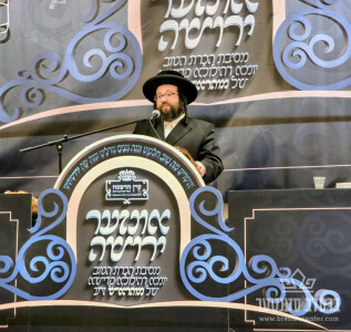 דער ראש ישיבה שליט"א ביים אויפטרעטן ביים גרויסארטיגע יארצייט פון מוהרא"ש זי"ע אין מאנסי - ג' יתרו תשפ"ו